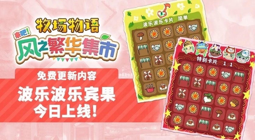 在本次免费更新中,最受关注的内容当属全新加入的 “宾果玩法”—— 这一玩法以 “波乐波乐宾果” 为名,玩家只需完成卡片上标注的各类任务,就能获取对牧场日常运营极具帮助的奖励道具。这些道具可能包括加速作物生长的特殊肥料、减少家畜照料时间的便捷工具,或是能提升集市商品吸引力的小物件,足以让原本需要精心规划的牧场生活变得更加轻松惬意,也让日常重复的操作多了一份目标感与新鲜感。而想要解锁这一有趣玩法,玩家需要先将游戏中的集市等级提升至 “都市级集市”,达成这一条件后返回自己的牧场,就能自动触发专属事件,不仅能开启 “波乐波乐宾果” 系统,还能直接获得首张 “宾果卡片”,开启全新的牧场挑战。