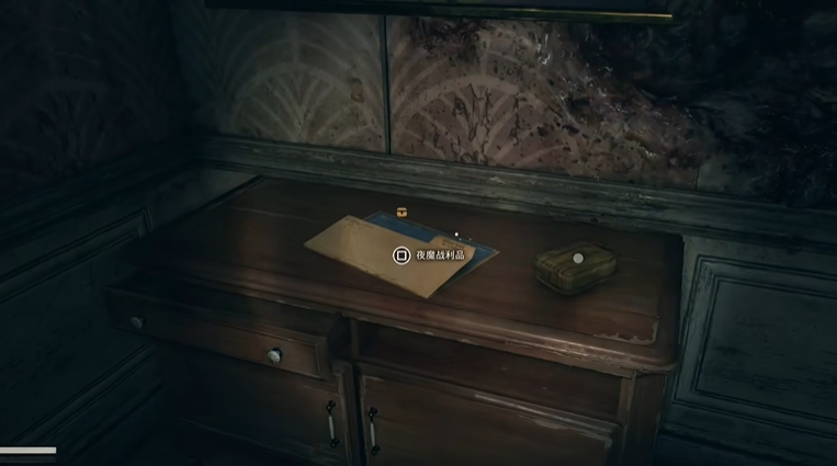 通过旋转楼梯上二楼时,会遭遇 1 只速度较快的变异感染者,建议提前装备近战武器(如消防斧)与其周旋。需用钥匙打开的门位于二楼走廊尽头,门板上有红色涂鸦标记,门锁为普通等级,无需技能即可解锁。进入房间后,夜魔战利品挂件放在靠窗的书桌左侧,与台灯并排摆放,靠近后按互动键即可拾取。
