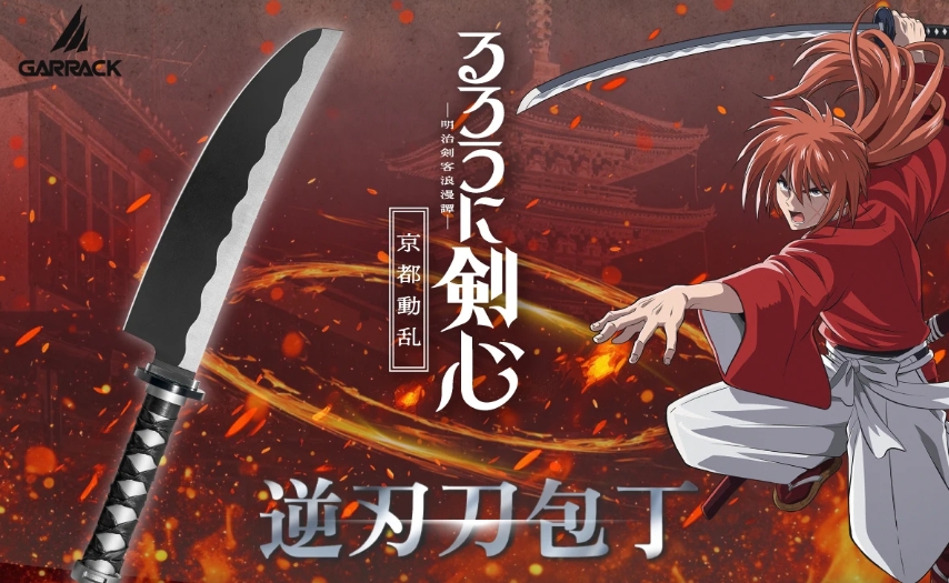 UENI 贸易近日宣布,旗下角色联动专门品牌 GARRACK 将推出《浪客剑心》主题跨界产品 ——“逆刃刀” 主题印象厨刀,这把融合动漫情怀与实用属性的厨刀将于 10 月 20 日正式开启预订,10 月 24 日全面发售,为动漫粉丝与厨具爱好者带来双重惊喜。