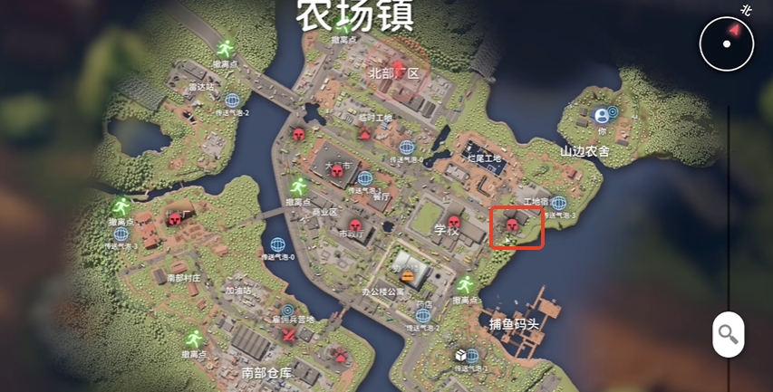 农场区共有六位 BOSS,前五位有固定刷新区域,最后一位为全图随机,战斗难度与应对方式各有不同。第一个 BOSS 是 “暴走街机”,外观类似小型机器人,攻击方式以直线激光与范围电击为主,整体强度较低,属于新手友好型 BOSS—— 玩家只需保持移动躲避技能,使用中远程武器持续输出即可轻松击杀,击败后大概率掉落基础武器配件与少量资源。第二个 BOSS “校霸” 刷新在农场区某建筑门口,这里常年爆发 “三方混战”—— 除了校霸本身,还会同时刷新多波普通敌人与敌对 NPC,玩家需先清理周边杂兵,再集中火力对付校霸。校霸的攻击以近战挥砍为主,移动速度较快,建议玩家利用地形拉扯,避免被其贴身。第三个 BOSS “市政厅保安队长” 刷新在市政厅内部,作为区域守卫型 BOSS,它会携带盾牌与霰弹枪,正面攻击防御极高,玩家需绕到其侧后方输出,同时注意躲避它的范围击退技能;第四个 BOSS “大超市” 并非单一怪物,而是刷新在超市区域的 “精英怪集群”,包含多名携带不同武器的敌对 NPC,玩家需提前规划进攻路线,优先解决远程输出的敌人,再逐步清理近战单位;第五个 BOSS 则刷新在伐木场,这里同时也是雇佣兵的刷新点,BOSS 与雇佣兵会协同作战,玩家可先吸引雇佣兵仇恨,逐个击破后再与 BOSS 对抗,减少战斗压力。最特殊的是最后一位 BOSS,它没有固定刷新区域,而是全图随机点位出现。当它刷新时,其覆盖的区域会变成红色提示圈,且 BOSS 本身没有血条显示,玩家无法判断剩余血量,只能通过持续攻击直至其被击败。由于刷新位置随机,玩家在探索过程中需时刻留意地图红色提示,遇到后建议优先集结队友协同作战,避免单独应对导致团灭。