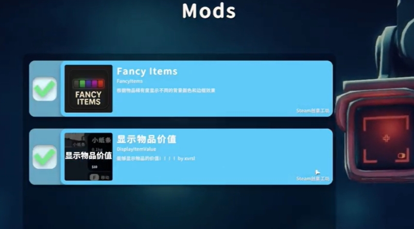 订阅完成后,还需在游戏内手动启用模组,才能让功能生效,具体操作仅需三步。第一步,启动《逃离鸭科夫》,在进入游戏主界面(登录页面)后,注意观察页面左侧,会有 “MOD” 选项,点击进入模组管理界面。第二步,在模组列表中找到已订阅的 “Fancy Items 模组” 和 “查看物品价值模组”,在每个模组名称前方的勾选框中点击,确保两个模组均处于 “已勾选” 状态 —— 未勾选的模组不会生效,需特别注意确认。第三步,勾选完成后,点击模组管理界面的 “确认” 或 “返回” 按钮,回到登录页面,之后正常进入游戏即可。