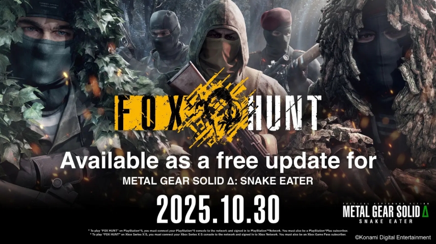 今日,KONAMI 正式为《合金装备:食蛇者 Δ(METAL GEAR SOLID Δ: SNAKE EATER)》推出全新线上多人模式「FOX HUNT」,该模式覆盖 PlayStation®5、Xbox Series X|S 及 Steam® 三大平台。玩家将被部署在系列经典的丛林场景中,深度融合《合金装备》标志性的潜行技巧与野外生存策略,在多人竞技中体验战术谍报行动的独特魅力。