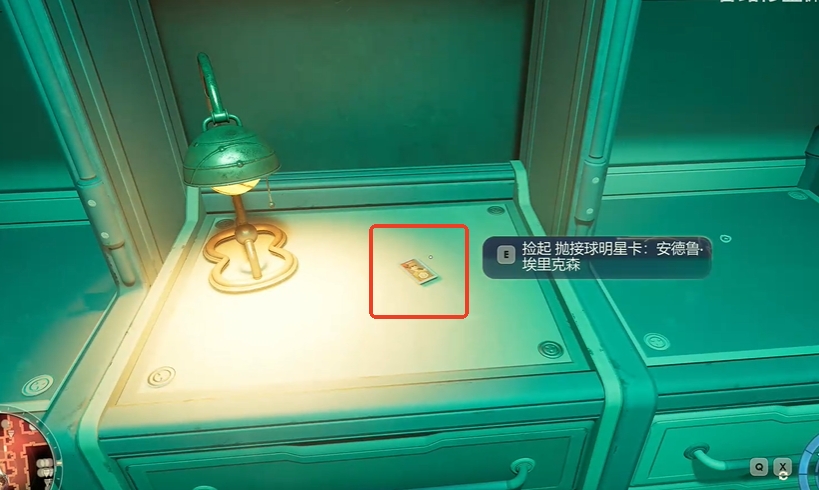 进入里屋后,寻找卡片的关键线索是 “带有台灯的桌子”。里屋的空间布局相对规整,不会有过多复杂的遮挡物,玩家进入后可先观察屋内环境,带有台灯的桌子通常会放置在房间的显眼位置 —— 可能靠近墙壁、窗户或角落,台灯的灯光在室内环境中具有一定辨识度,很容易被发现。当找到这张带有台灯的桌子后,就能看到 “抛接球明星卡:安德鲁・埃里克森” 直接摆放在桌面上,无需额外操作或解谜。