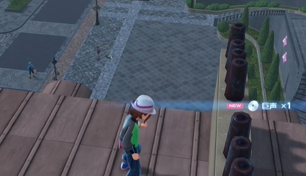 第五步,拾取金色宝可梦球获取招式学习器。降落到第三座屋顶后,目光转向右上角方向,就能看到一个闪着金色光芒的宝可梦球,这正是巨声招式学习器的载体。金色光芒在屋顶环境中格外突出,不会被遮挡,玩家只需朝着宝可梦球的方向行走,靠近后按下互动键捡起,就能成功获得巨声招式学习器,整个获取流程到此结束。
