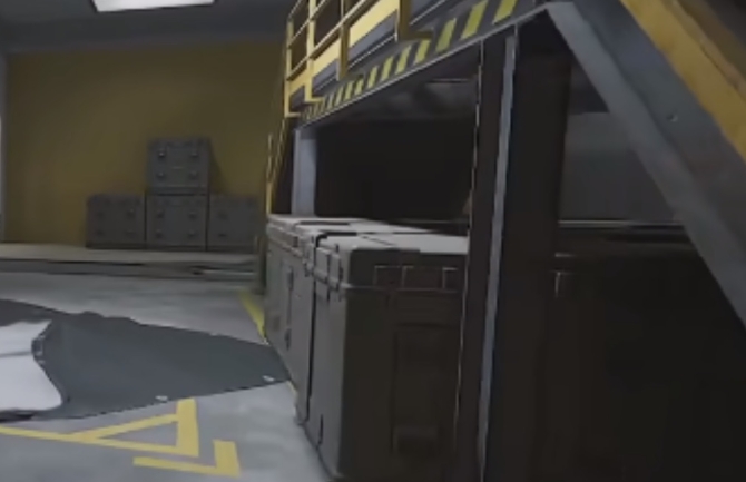 卸货区:包含两个具体点位,点位 1 位于黄色集装箱堆的顶部,从外围大门进入后右转即可看到,可通过攀爬集装箱快速抵达;点位 2 在卸货区深处的箱子上方,具体位置在货架最下方的旅行袋旁边,需仔细观察周围环境,避免遗漏。