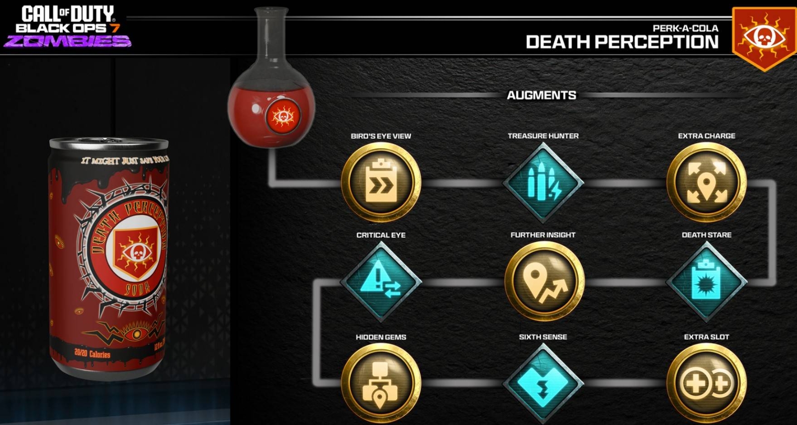 在《使命召唤:黑色行动 7》中,“死亡感知” 特长可乐是一款主打 “战场信息优势” 的核心增益道具,核心基础效果为 “显示被遮挡敌人的轮廓”,能帮助你穿透掩体、烟雾等障碍物,提前锁定敌人位置,大幅降低被偷袭的概率。在此基础上,它还包含丰富的大型改造与小型改造选项,覆盖物资探索、伤害强化、视野拓展等多个维度,新增改造更带来背后预警、感知战利品等实用功能,同时部分改造有冷却机制与武器限制,适配不同战斗场景与玩法需求,具体详情如下: