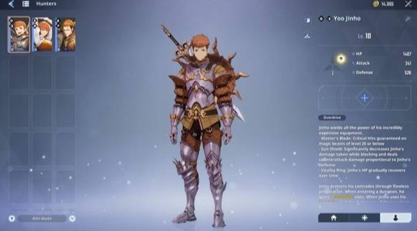 在《我独自升级:起立・觉醒》的猎人阵容中,刘晨浩是玩家推进剧情至中期的关键防御伙伴,作为完成第二章主线剧情后系统自动赠送的首位坦克型猎人,他凭借极高的防御力、厚实的生命值以及光系专属特性,成为开荒期队伍中不可或缺的前排屏障,为后排治疗与输出角色构建安全的战斗环境,让整个队伍的生存能力实现质的飞跃。