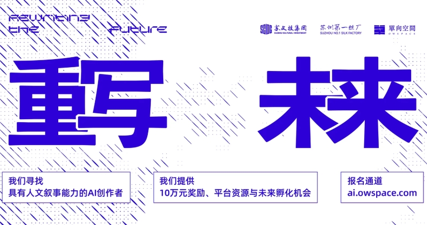 当江南文脉邂逅数字未来,一场关于 AI 与人文叙事的创意盛宴就此启幕!近日,由苏州文化投资发展集团、苏州第一丝厂联合单向空间共同发起的 **“重写未来” AI 文学影像大赛 **,在苏文投集团总部正式拉开帷幕。这场立足 “江南文脉” 深厚底蕴与 “数字未来” 创新浪潮的赛事,面向全球创作者发出征集邀请,旨在打破 AI 技术 “炫技” 的刻板印象,让冰冷的算法真正为有温度的人文叙事服务,将沉淀千年的文本经典与当代创意融合,转化为兼具艺术质感与时代生命力的影像作品,为文化传承与技术创新搭建起一座沟通的桥梁。